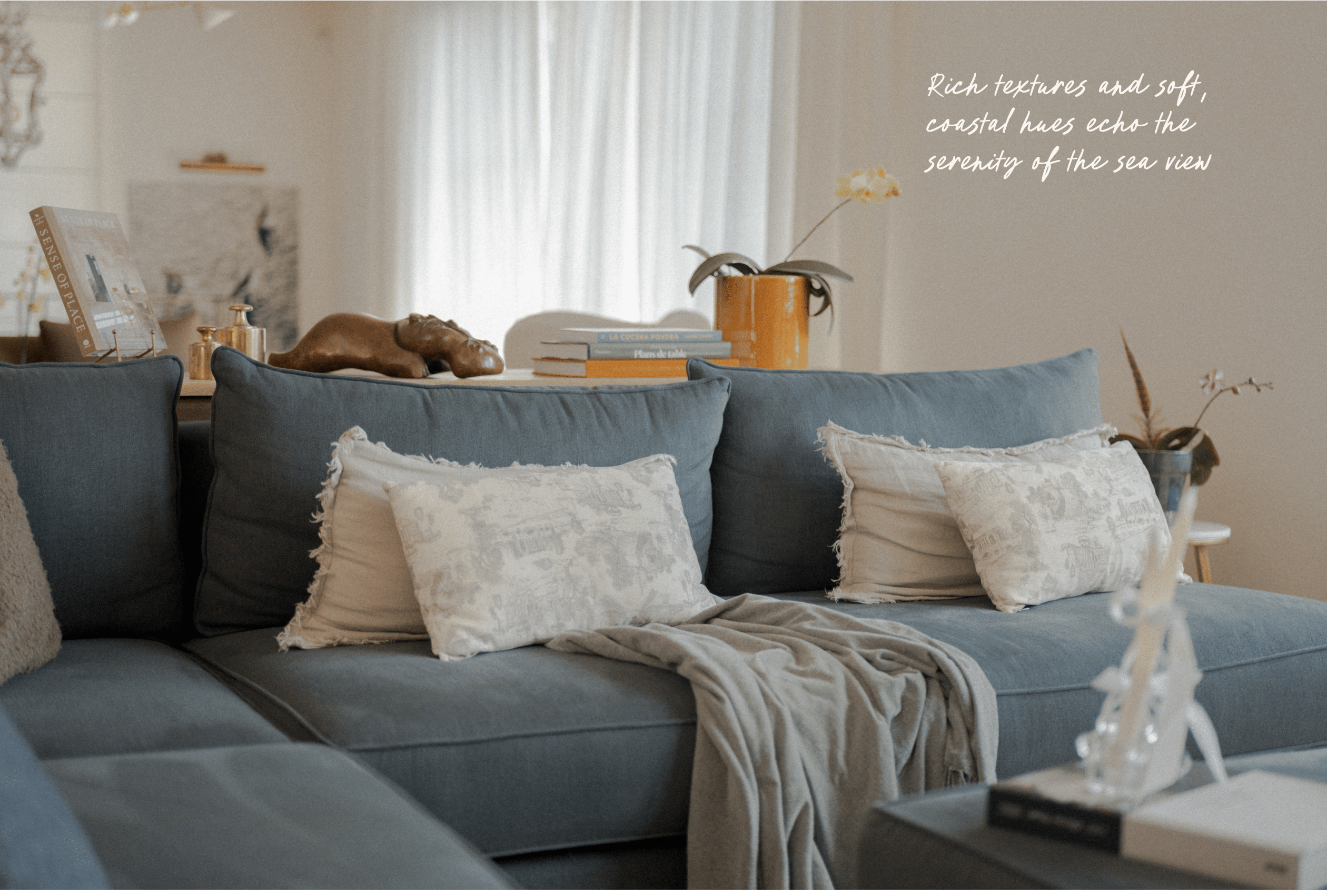” The palette draws from nature, inspired by where sky meets sea : soft off-whites, warm neutrals that fades softly into the light.”