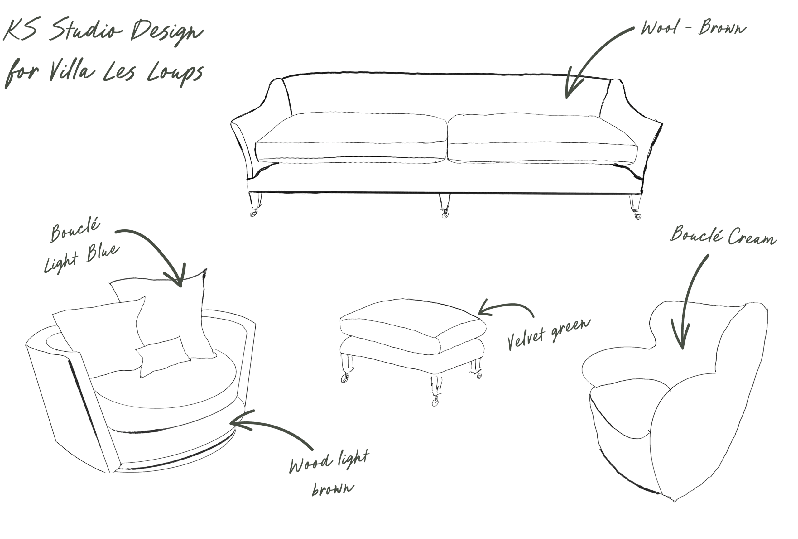 Early sketches for Villa Les Loups reveal KS Studio Design’s creative process, where every custom furniture begins as a hand-drawn vision.