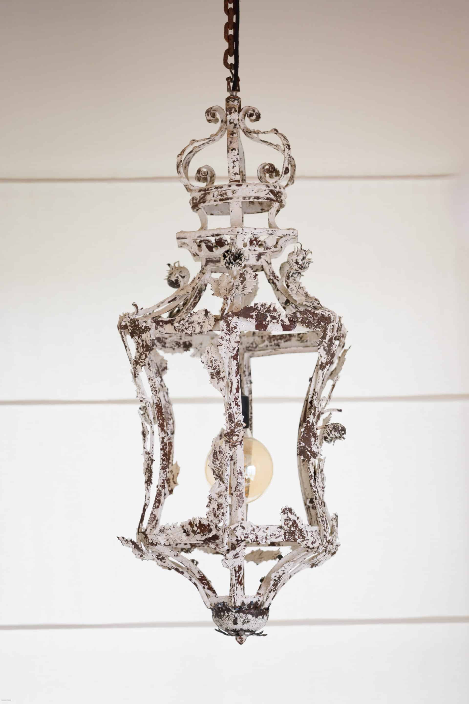 A large scale, French brutalist ironwork chandelier. In its original form to hold pillar candles, the piece has been electrified. “It was bought at the Puces in Paris on a rainy day ” she recalls. KS built all of her inspiration around this lantern. You can find the brown and white colours throughout the house.