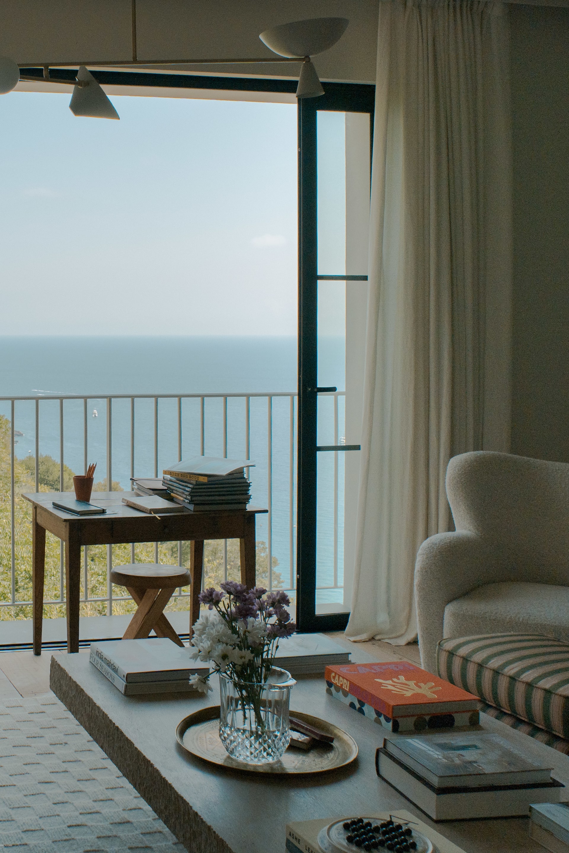 Step inside and the first thing you notice is the light—soft, abundant, shifting as the day unfolds. KS approached the project with a clear intention: the sea is the star. “I didn’t want to compete with the view —because honestly, you just can’t”, she laughs. Instead, she softened the interiors to let them breathe, to stay calm and open, allowing the outside to flow in.