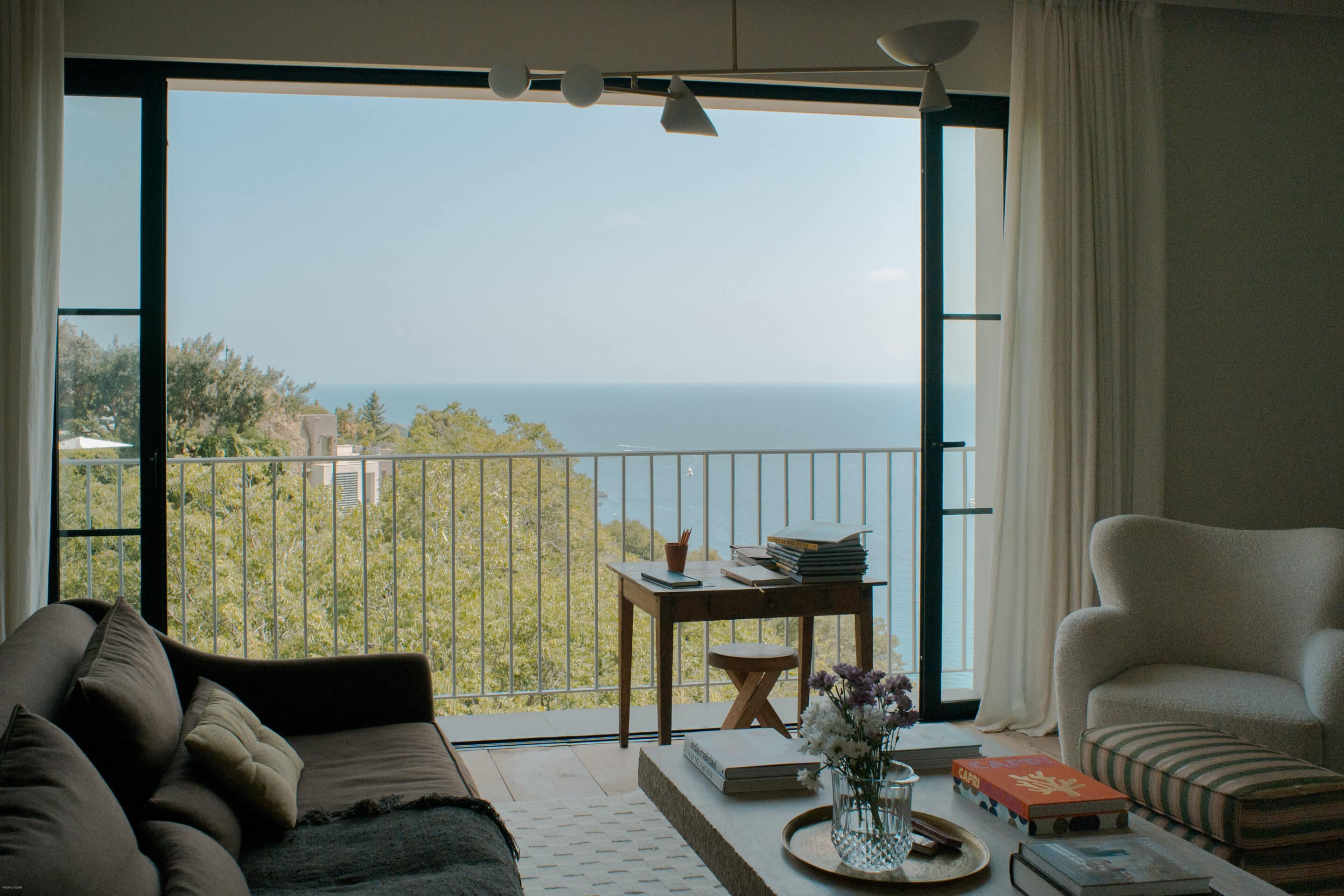 Enlarged windows dissolved the boundary between inside and out, transforming walls into luminous frames for sea, sky, and light.