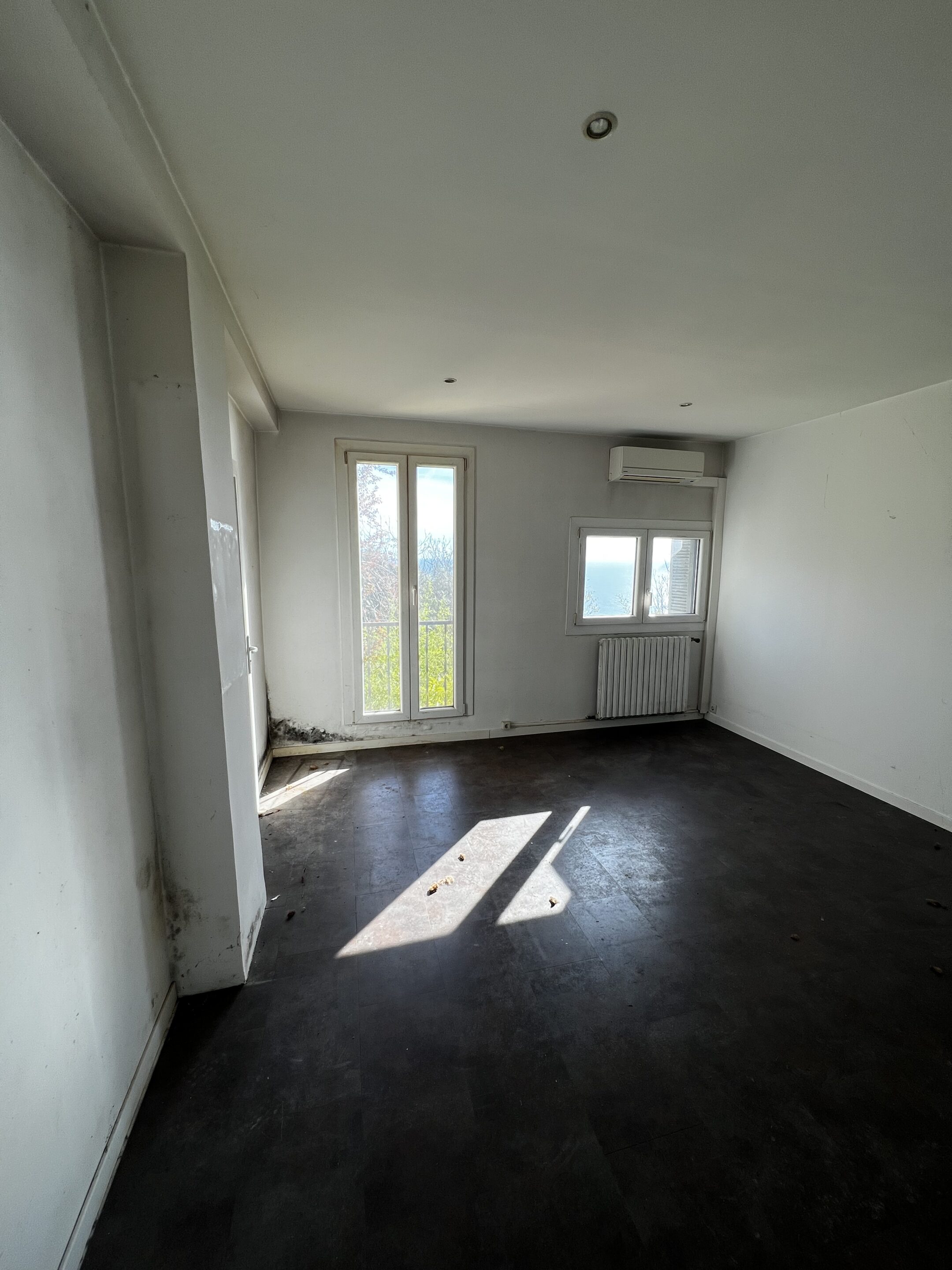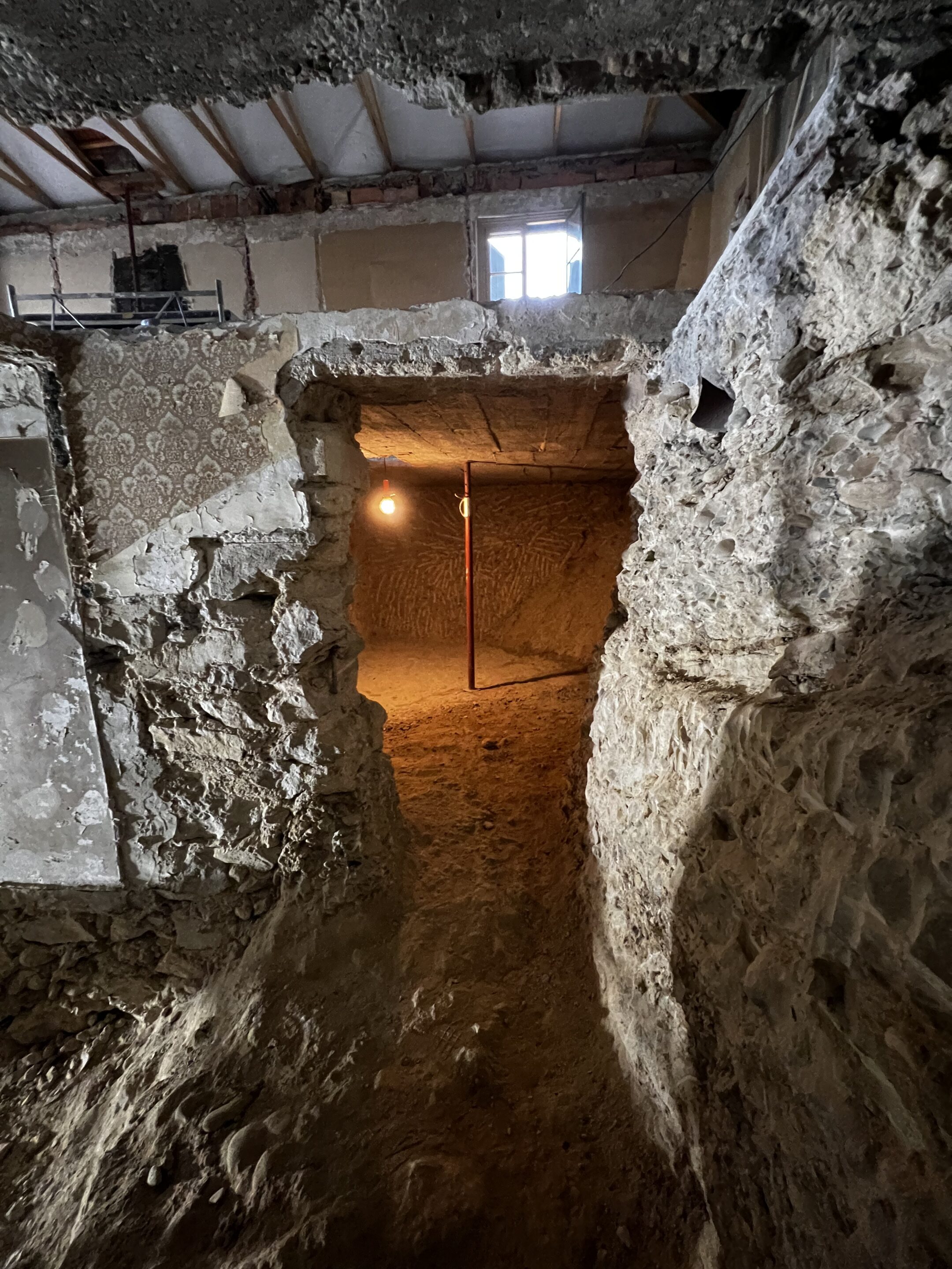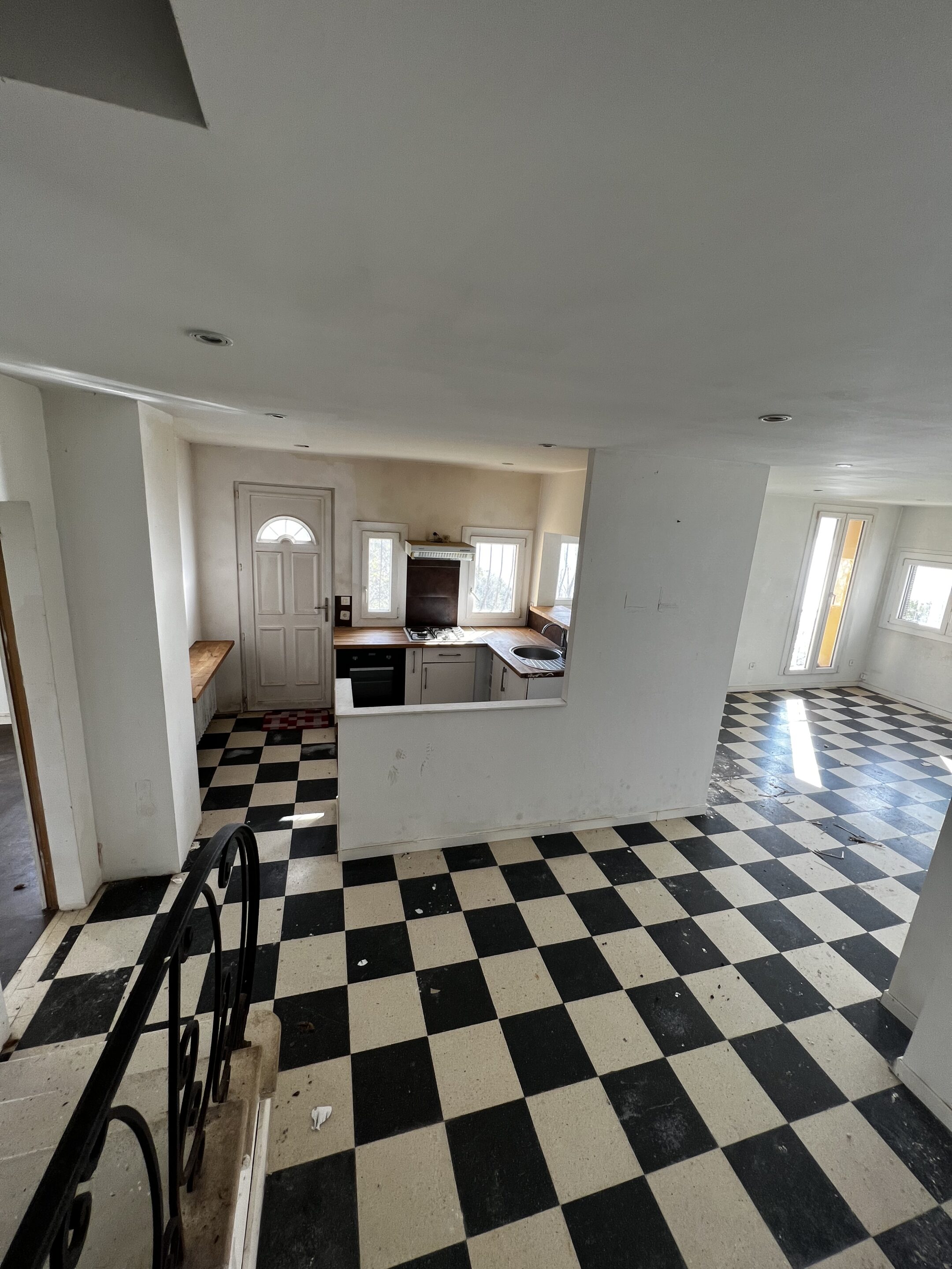 View from the entrance into the living room during the renovation.